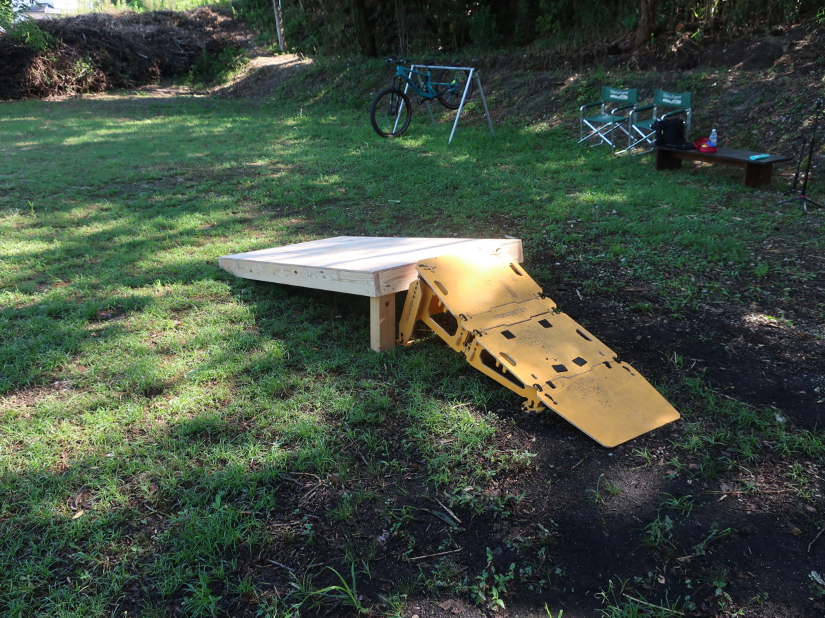 そこで今回は、お店で用意できる市販のジャンプ台が大きすぎるので、市販のジャンプ台の高さに合わせて、やさしい角度の着地面(バックサイド)を新たに用意していただきました。